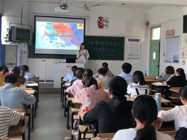 近日,文学院学生第二党支部开展纪念五四运动100周年主题党日活动。