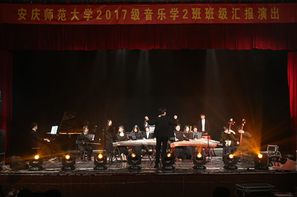 此次汇报演出只针对大二的学生,是音乐黄梅剧艺术学院的传统演出,学生在一个多月前就开始准备,以舞蹈、独唱、民歌联动、大合唱,民乐合奏、西洋乐器演奏等多种形式,展现了他们扎实的专业功底与实践学习的成果。演出以班级为单位,各班同学根据节目形式报名参加。