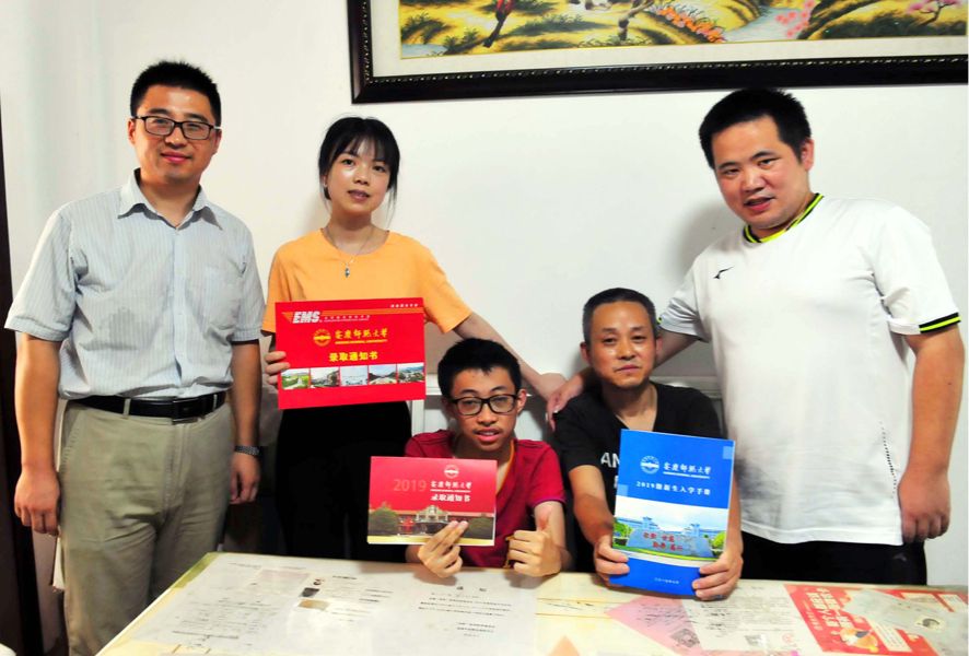 南陵阳光学子管同学从小就双下肢残疾无法行走,上下学需要父亲骑电瓶车接送,在校上厕所需要同学搀扶,但是坚持刻苦学习,在今年高考中考出499分,填报永利官网应用统计学专业并被录取。