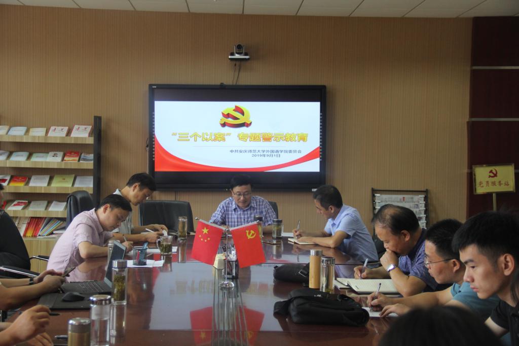 9月1日上午,外国语学院党委书记郝涂根主持召开党委中心组理论学习(扩大)会议,专题学习“三个以案”警示教育会议精神。党委班子成员、全体支部书记参加。专题学习会集中通报了上级党委关于“三个以案”警示教育精神及省委有关通报精神,观看了《永远在路上》警示教育片,并开展了集中研讨。