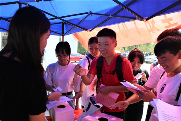“刚开学的时候辅导员开过班会,其中有提到过网络推销、网络诈骗和网络刷单的事情。”计算机与信息学院计算机类2019(8)班的李洁说,“今天这个活动介绍的更全面,还有相关的法律知识。”李洁展示了自己手中的红色宣传单,一份是《如何应对常见的网络安全风险》另一份是《中华人民共和国网络安全法》亮点解读。