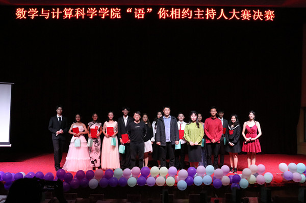 10月16晚,数学与计算科学学院于图书馆东厅举办了“语”你相约主持人大赛决赛。通过初赛和复赛的层层选拔,一共有7名选手进入此次决赛。经过激烈的角逐,最终来自应用统计学专业2019级的周寒获得了此次比赛的冠军。大赛邀请了各主持比赛的冠军作为评委。该院党委副书记何骏、部分辅导员以及300多名观众一同出席了此次比赛。