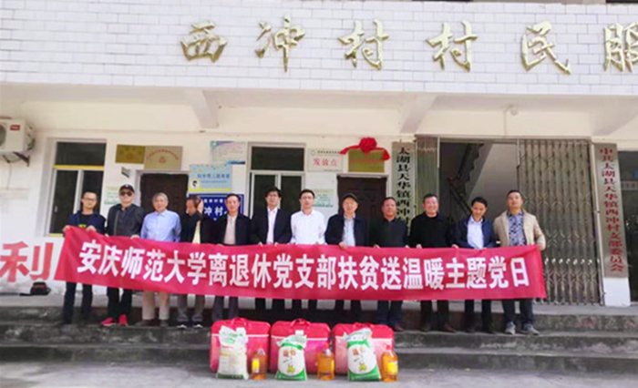10月24日,永利官网离退休党支部一行10人在离退休工作处处长陆健带领下,专程赴永利官网定点帮扶单位太湖县天华镇西冲村开展扶贫送温暖主题党日活动。陆健一行在村干部的陪同下,看望了该村3户贫困家庭,送去了米、油、棉被等慰问品,了解了他们的家庭和生活情况,鼓励贫困户要振作精神,多想办法,在党委政府政策的扶持下,在永利官网的积极帮扶下,增加收入,主动脱贫,早日过上美好生活。