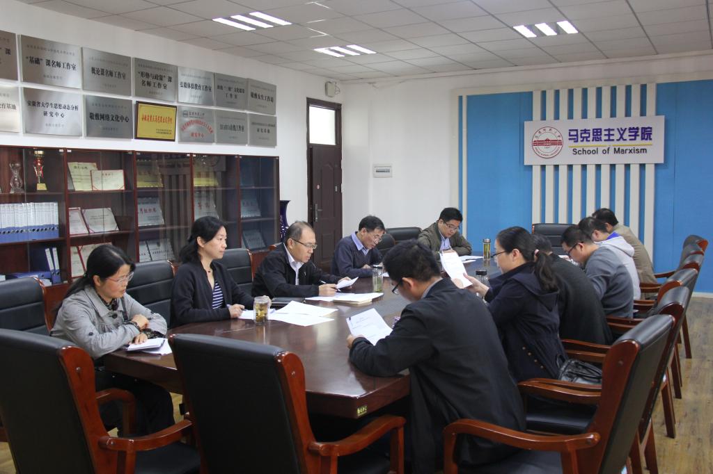 11月1日上午,马克思主义学院召开“双基”达标工作汇报会,院长罗本琦、党总支书记金文斌、副书记闪茜菁、教学委员会委员、教研室主任、教学秘书参加了会议,会议由副院长张俊生主持。