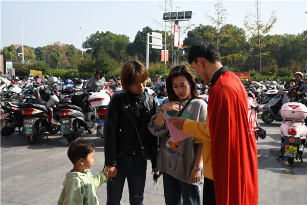 “因为喜欢,所以开始。因为责任,所以坚持。”谈及坚持做公益活动的原因,唐啸的答案是“责任”。“即使被一百个人拒绝,也相信第一百零一个人愿意伸出他的手,这就是我们劝募志愿者。”唐啸说。(文/学生记者 刘敦宝 图/学生记者 张俊田)