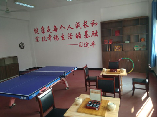 在活动室建设过程中,得到校工会大力支持,图书馆本着为员工着想,服务员工的原则,购置了职工平时比较喜爱质量上乘的各类棋牌及健身器材。室内摆放有围棋、象棋、乒乓球、羽毛球、跳绳、飞镖等器材。