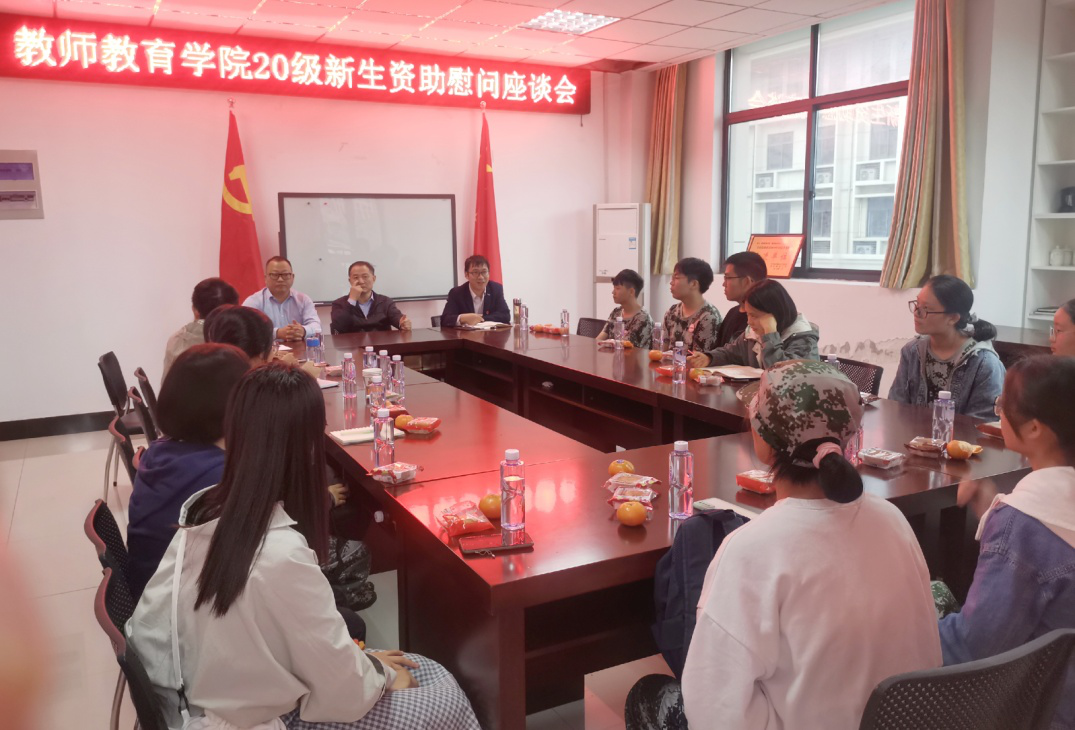 9月22日下午,教师教育学院2020级新生资助慰问座谈会在J202举行,学院党政班子、新生班辅导员、本硕新生13位学生代表参加。座谈会由院党委副书记许世平主持。