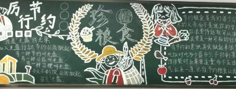 活动自开展以来,各班级积极响应,认真收集资料,精心设计版面。同学们绘画果蔬粗粮的卡通造型,形象地描绘出粮食的来之不易;引用名言警句和古人事迹,衬托出勤俭节约品质的可贵;罗列具体而真实的数字,直观地表明厉行节约的必要性。一幅幅主题鲜明、内容丰富、创意新颖的板报既蕴含着青年学子对节约粮食的见解,又流露出他们对传承优良品德的祝愿。