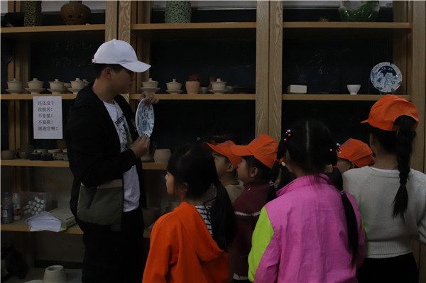 “哇!简直太厉害了!这都是怎么做的啊?”“真的太神奇了!”“哥哥,这是什么啊?”……“问题宝宝”们挤满了整个陶艺工作室,产品设计专业2017级的郭威打开一台拉坯机,和小学生们说:“大家有没有在电视上看过一块泥巴在一块转盘上变成一件精美物件的过程呢……”在和大家介绍机器的同时,郭威也不忘时刻提醒大家注意安全,不要受到伤害。