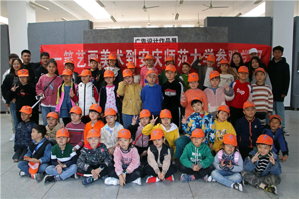 “大家排好队,跟着哥哥后面走。”11月10日上午,校园里迎来了一群特殊的客人,来自安庆市的39名小学生和6位老师,小学生们戴着橘色的帽子,井然有序地排好队,在大学生哥哥姐姐的带领下参观美术学院展厅。