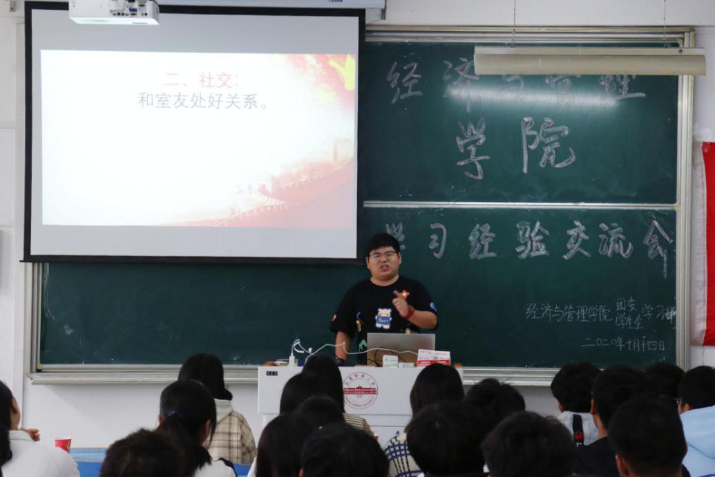 “学姐,如何充分利用好课余时间?我们专业都有哪些比赛可以准备?”10月14日,经济与管理学院团委学生会学习部在永利官网龙山校区C203教室举办了学习经验交流会。来自2018级和2019级不同专业的五名优秀学生代表给大一新生们分享经验、答疑解惑。