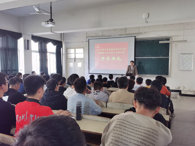 11月4日下午,电子工程与智能制造学院分党校第62期入党积极分子培训班开学典礼在稼先楼二楼多媒体教室举行。学院党委书记、分党校校长江贵生出席了开班典礼。