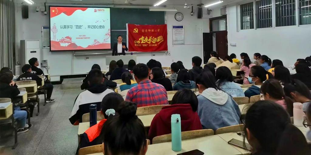 为进一步加强学生思想道德建设,传承红色文化基因,11月7日晚,马克思主义学院举办“四史”主题学习教育班会,2020级新生辅导员田梦甜、“青年新声·学‘四史’宣讲团”学生代表张莉静以及学院2020级全体学生参加班会。
