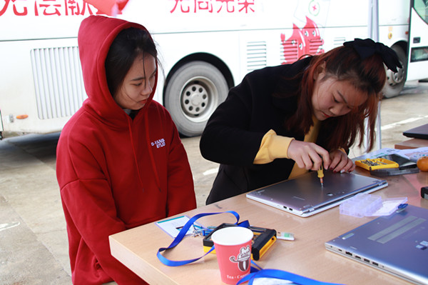 “如果长期不清理灰尘,电脑运行时会卡顿而且散热器会发出较大的声响。”工作人员黄思源向大家介绍。从早上8点一直到下午一点,他一直在义诊现场。“除了有点冷,我不觉得累。”黄思源表示,揭开电脑后盖、看到电脑主板时他也有点紧张,怕弄坏了同学的电脑,但这种紧张让他更加小心地工作。