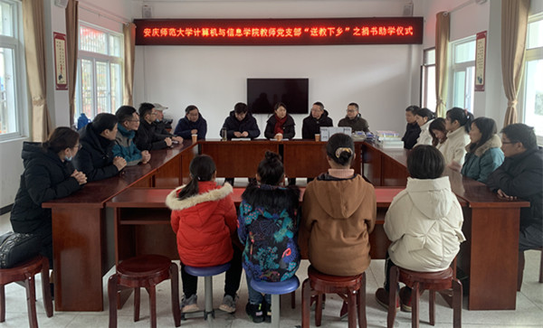 12月14日,计算机与信息学院教师党员在学院党委书记陈银凤的带领下赴太湖县西冲村开展结对扶贫慰问和“送教下乡”主题活动,为结对的困难群众送温暖,在乡村学校通过支部结对开展以捐书助学、教授博士进课堂等为内容的“送教下乡”活动。