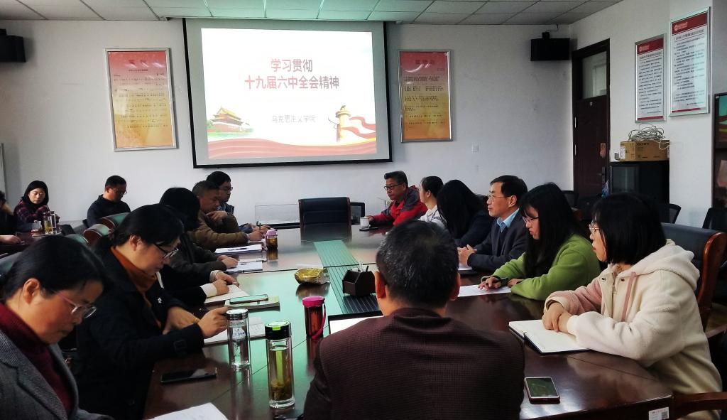 11月11日,中国共产党第十九届中央委员会第六次全体会议胜利闭幕。马克思主义学院第一时间组织教职工通过多种途径展开了党的十九届六中全会精神的学习,并于11月17日下午召开教职工专题学习会。