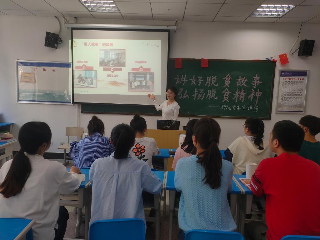“带着母亲去扶贫”“大学生村官的驻村‘七年’”“第一书记邱宏瀛:心里装着乡亲们的致富梦”……伴随着台上宣讲人的讲述,大屏幕上呈现出一张张照片、一个个村落、一段段故事,台下听众全神贯注地听着,被一个个鲜为人知却又感动人心的脱贫故事所吸引。自4月6日起,外国语学院“倾听者”团队开展“学党史 讲好脱贫攻坚中国故事”系列主题宣讲活动,前后于校内校外共宣讲8场,讲述60个真实脱贫故事。
