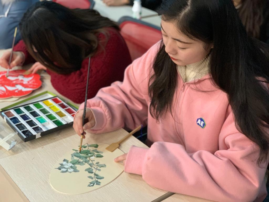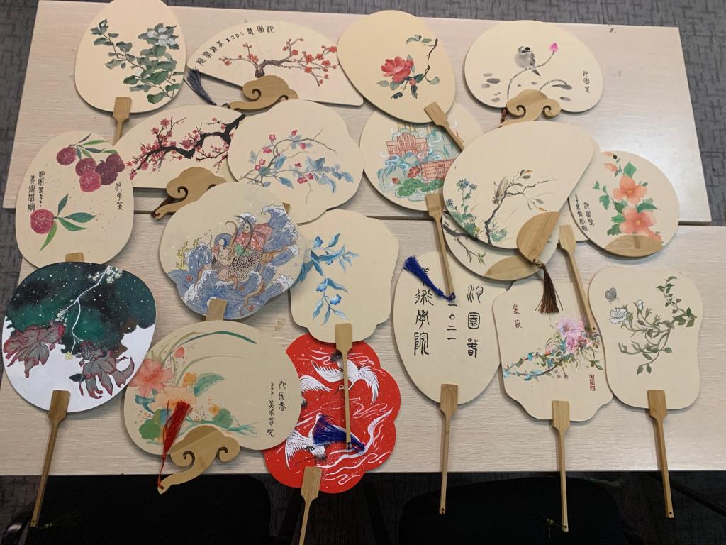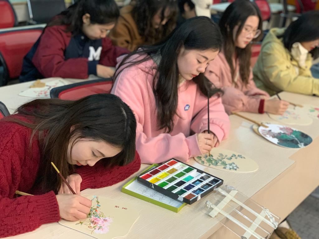 红梅、蔷薇、桃花等各色花卉,再配上小篆字体的文案,一幅花鸟图就出现在了纸扇的扇面上,这就是美术学院学生为学院“沁园春”晚会制作的20余个“扇子版”邀请函。12月23日,收到这份特色邀请函的老师们直呼“学生们有心了!”。