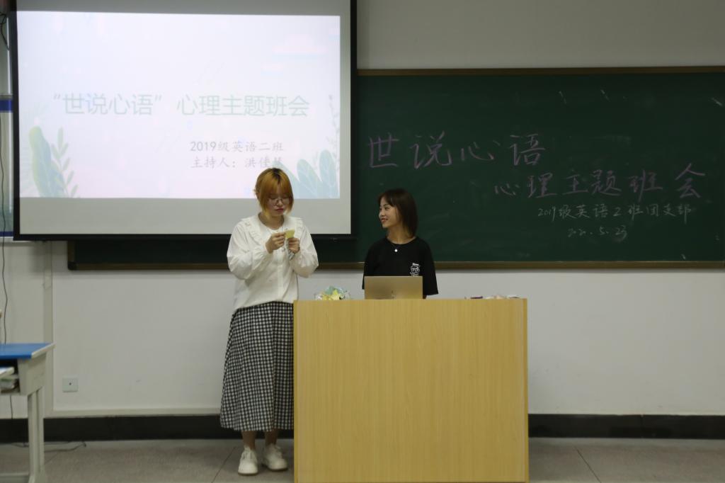 “马兰花儿开,马兰花儿开”“开几瓣?”“开四瓣!”……话音刚落,教室中央的人群立刻按照所说数字抱成一团。5月23日,外国语学院407教室内传来一片欢声笑语,原来是英语专业2019(2)班正在开展“世说心语”心理主题班会。