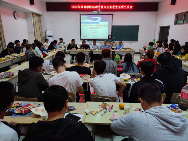 10月27日晚,体育学院运动康复专业新老生见面学习交流会在学院多媒体教室召开。体育学院院长章翔、党委副书记高栋梁出席会议,运动康复教研室主任孙明运博士、辅导员及各年级运动康复专业研究生、本科生参加了会议。