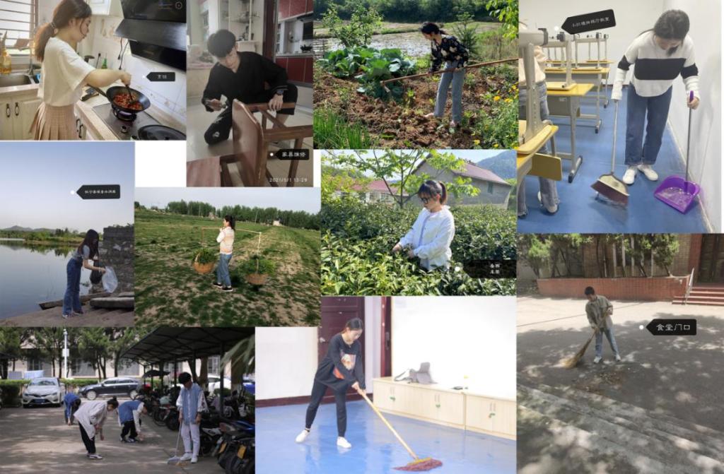 5月1日至5日,学院全体学生各展所长,开展了丰富多彩的劳动实践和劳动教育活动。留校学生参加了学院组织的校园和教学场所清扫活动;回家返乡的同学则进行了营养烹饪、种植养殖、清洁整理、家居维修等日常生活劳动,部分学生结合实际,就近开展社区志愿服务等;家住农村的同学在家主动承担家里的耕田、采茶、种植、喂养家禽等工作,帮助父母减轻负担。学生们还以图片、视频等形式,开展劳动技能成果大比拼,展现自己的劳动过程,分享自己的劳动成果。