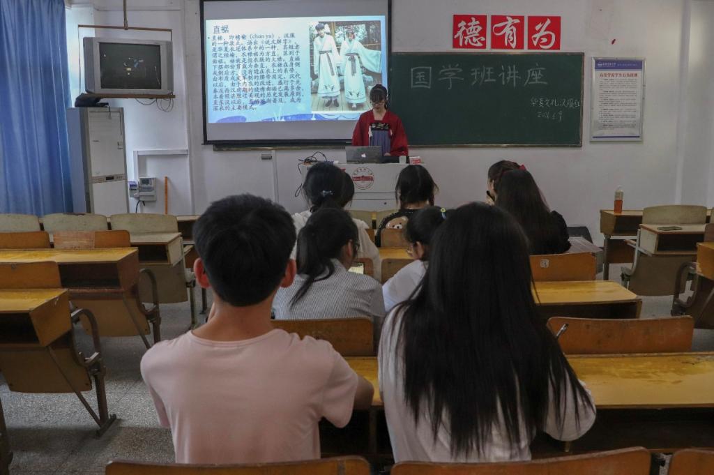 “大家知道历朝皆可使用的拱手礼是什么样的吗?”6月9日,为了传播汉服文化,安庆师大华夏文礼汉服社在该校菱湖校区举办国学班讲座。