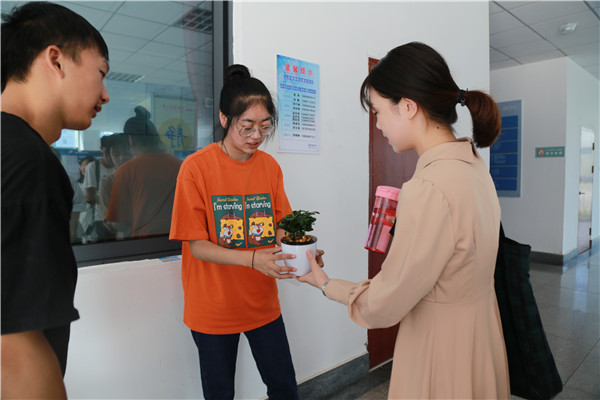 绿色清新的小盆栽、柔软舒适的颈枕、实用朴实的饭盒、印有祝福语的定制笔记本……9月10日上午,数学与计算科学学院在该学院举办了“感念师恩”教师节主题活动,这些小礼品都是院学生会为老师们准备的一个“小惊喜”,老师们需要通过抽奖来获得礼品。