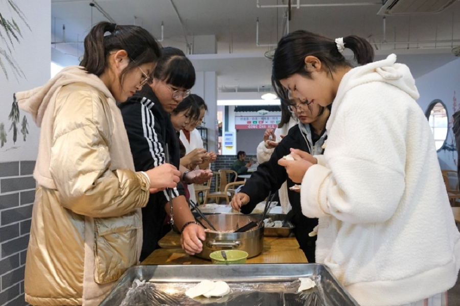 洗菜剁馅,搅拌肉馅再到包制饺子,在11月7日立冬这天,工商管理专业2021(1)班选择用包饺子的方式来开展此次心理健康活动。学生们在包饺子过程中讨论着自己家乡饺子的形状,对比着各式各样的饺子,会包的学生还手把手地教着第一次包饺子的同学。谈及包饺子的活动想法,袁世博同学说:“看似包饺子与心理健康活动没有什么关系,但其实在包饺子的过程中大家相互交流,增加了彼此之间的了解,同时还能够带给大家一个温馨的体验感。”