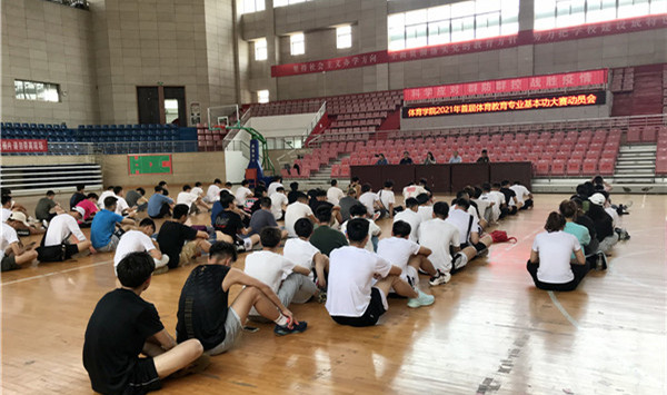 6月5日,体育教育专业学生基本功大赛初赛在体育学院在龙山校区体育馆各场馆及教室举行。初赛阶段考核内容主要分为专业基础理论知识与运动技能两个部分,专业基础理论知识主要包括运动解剖学、运动生理学、运动保健学、学校体育学、体育心理学等课程及近一年体育时事等内容;运动技能包括田径、体操、球类(篮球、排球、足球)、武术等四项内容。经过紧张激烈的角逐,综合成绩前45名的同学脱颖而出晋级决赛。6月30日,决赛在龙山校区体育看台各场馆举行。决赛阶段主要考核学生英语和师范生教学技能(微课)。
