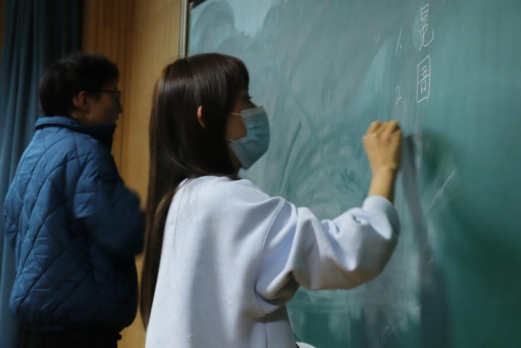 初赛采取的是考试的形式,选取小组平均分排名前四的队伍进入决赛。初赛开始前,选手们查漏补缺,复习生僻字,小组队员间相互提问,增强记忆。 “考试的题目出乎我的意料,猜字谜和甲骨文很有趣,但同时也让我认识到自己对汉字文化的了解不够深入,对我以后学习汉字文化有所启发。”新闻传播学类专业2021(2)班的卢可在比赛后说。