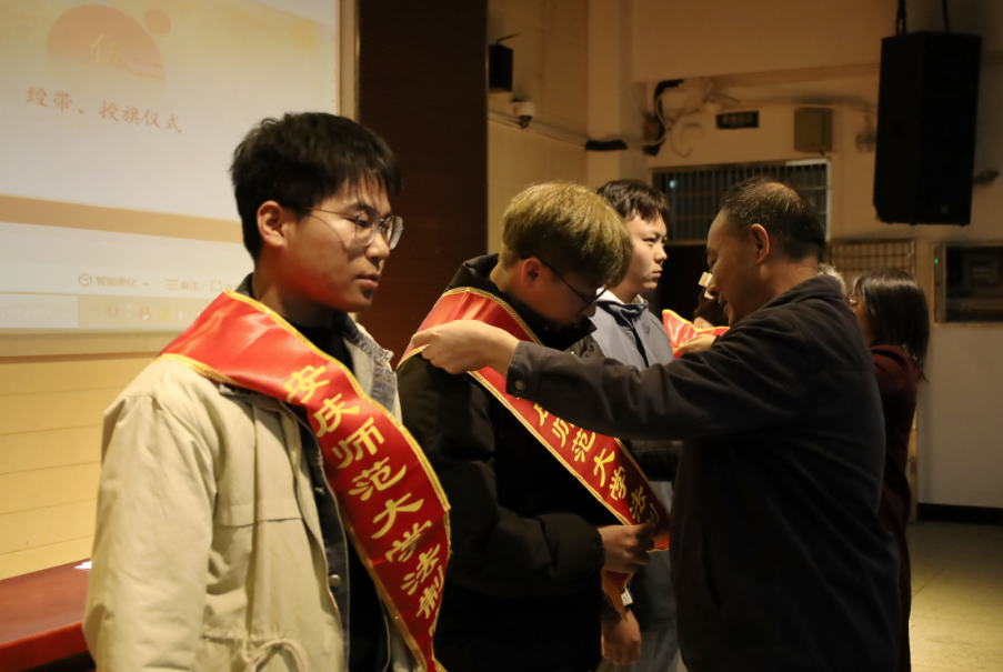 开幕式上,学院领导为法律志愿者代表佩戴绶带。(撰稿:学生记者 贾睿雯 摄影:学生记者 王若男 审核:从光梅)