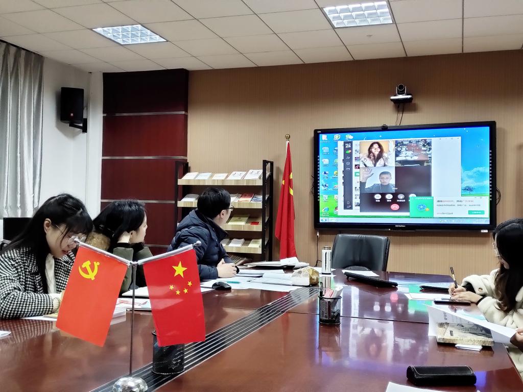 北京时间12月4日19时,美国当地时间12月4日6时,英语(合作)专业学生党支部一场特殊的接收新党员大会在E304会议室举行。出席本次会议的六名党员中,有两位分别就读于美国索尔兹伯里大学和香港中文大学,他们通过视频连线的方式履行了党员的义务、行使了党员权利。