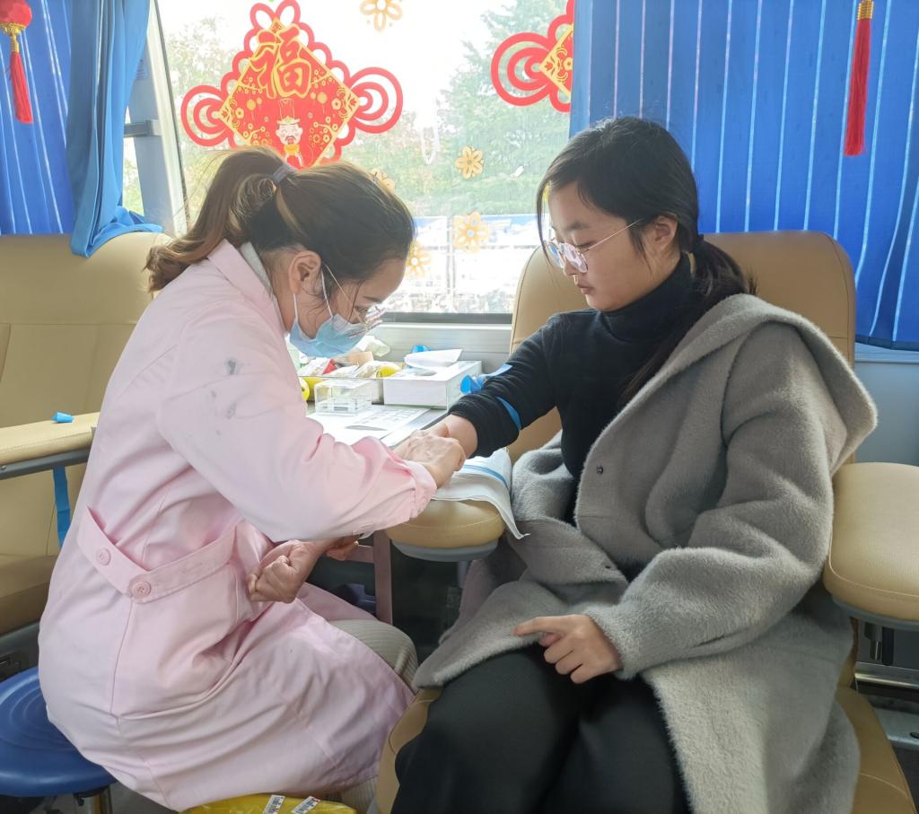 思想政治教育专业2020(1)班的白茹月虽然已经填好了个人信息,但仍然略显担心。在排队等候期间,她不断地和一同前来献血的室友们闲聊,缓解自己的紧张。完成献血后,白茹月迫不及待地给自己的无偿献血证拍了照片,她说:“我一定要第一时间分享给我的父母、朋友们。因为我发现,其实献血并没有我们想的那么可怕,而且这是一件很值得纪念的事情。”