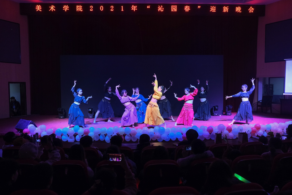 “新的一年即将来临,祝大家新年快乐……”12月27日,美术学院于图书馆东报告厅举办2021年“沁园春”迎新晚会,晚会在学院准备的新春祝福视频中拉开帷幕。美术学院党委副书记查国平等老师及学院学生400余人参加了此次晚会。