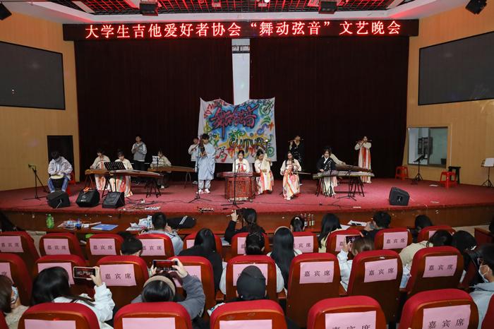 清脆明亮的民谣吉他、余音绕梁的钢琴弹奏、动感十足的舞蹈表演……12月4日晚七点,随着悠扬的乐器合奏声在图书馆东厅响起,大学生吉他爱好者协会与舞蹈爱好者协会、民乐爱好者协会等4个协会联合举办的“舞动弦音”文艺晚会拉下帷幕,为300余名学生带来了一场视听盛宴。