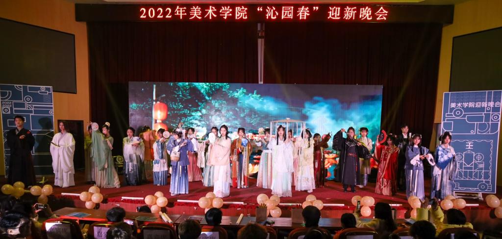 动感活力的爵士舞、幽默诙谐的脱口秀、激情澎湃的诗朗诵……12月15日,美术学院在图书馆东厅举办2022年“沁园春”迎新晚会,晚会现场座无虚席,学院党政领导、教师代表和400余名学生共同观赏了本次晚会。