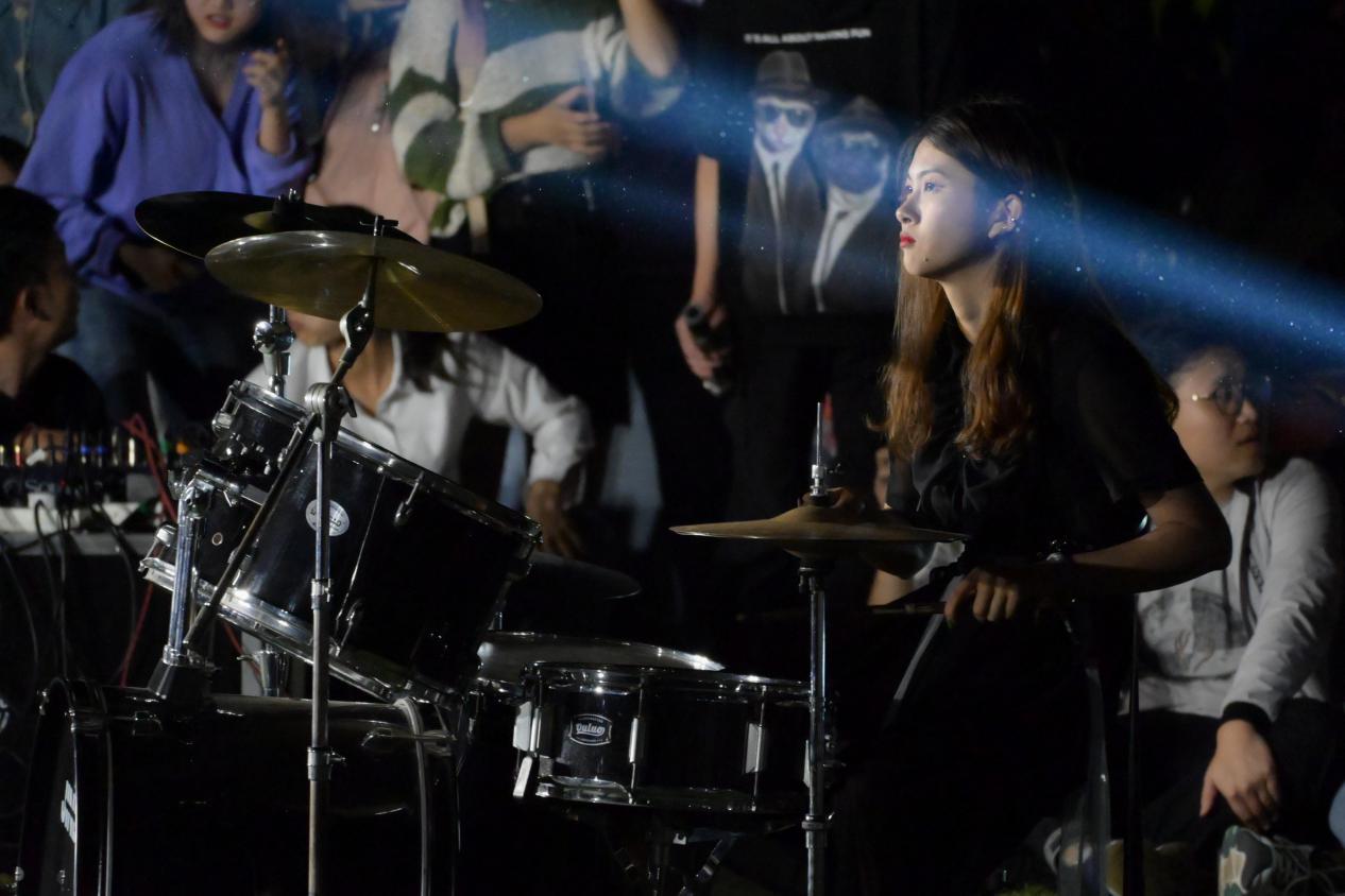 音乐声传得很远,附近的居民也闻声赶来,其中不乏学校的老师。一位马克思主义学院的老师抱着女儿观看表演,“学校还没有举办过这样反响热烈的音乐活动,我也是第一次带着孩子来观看,感觉很不错。”