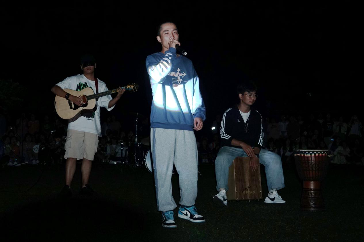 歌曲《前半生》前奏婉转悠扬,高潮情绪激昂,是由音乐学院2020级的4名新生组成了白给乐队带来的演唱,这是乐队的第一次公开演出。乐队主唱卢士鑫说;“草地音乐节给我们新生一个展示的平台,现场的氛围让我觉得演出是成功的,很期待下一次的活动。”