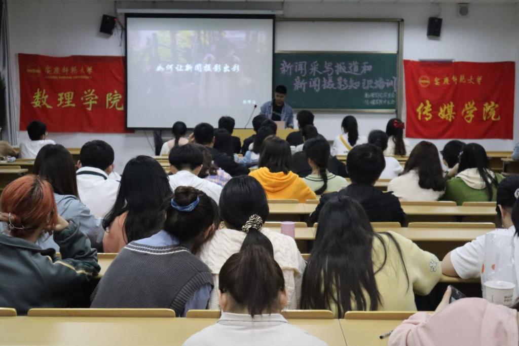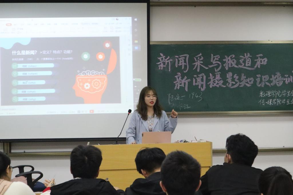 为进一步提高学生骨干的新闻稿撰写水平与摄影能力,4月28日晚,数理学院团委在外国语学院204教室举办了新闻采写报道和摄影知识培训会,来自传媒学院的校记者团学生记者徐辉浩、王杰担任主讲嘉宾,两院近百名学生骨干参加了本次培训会。
