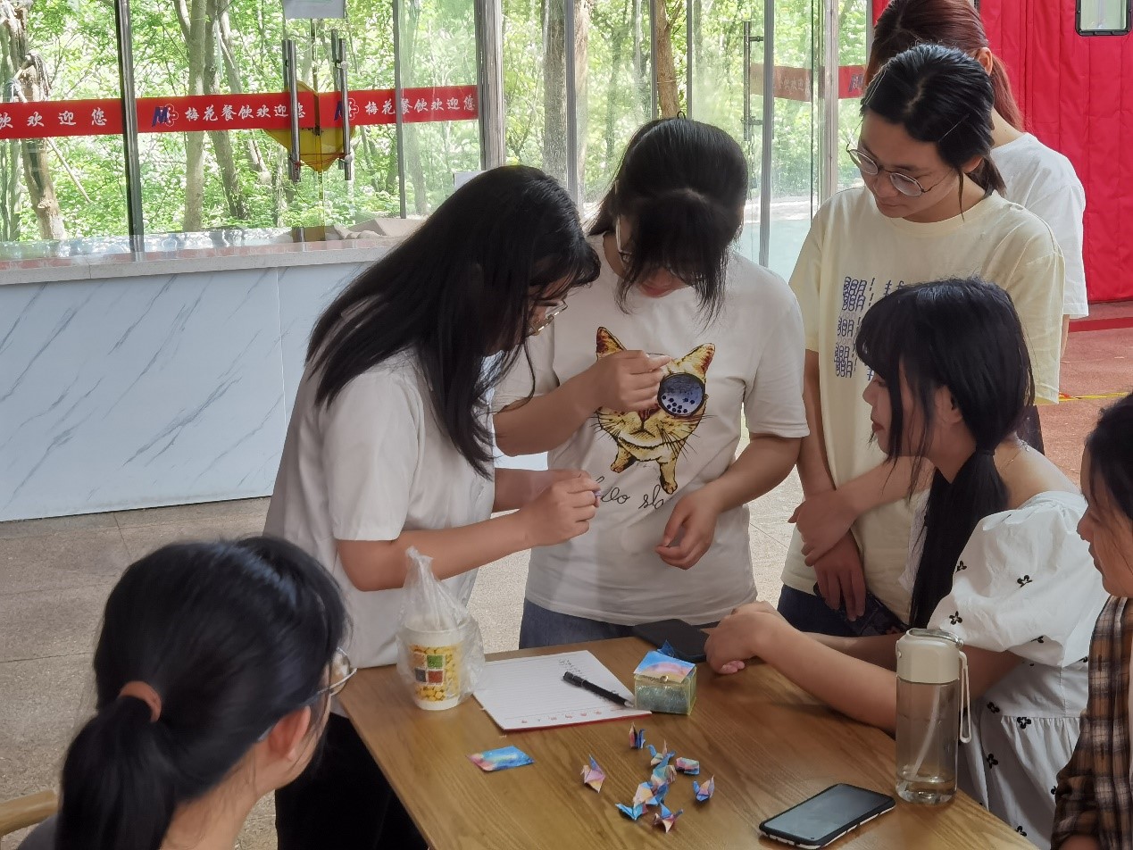 本次心理健康节活动以“感恩青春,心系成长”为主题,先后进行了“祝福千纸鹤”“信任背摔”“爱的抱抱”三个活动内容,吸引了不少学生前来参加。