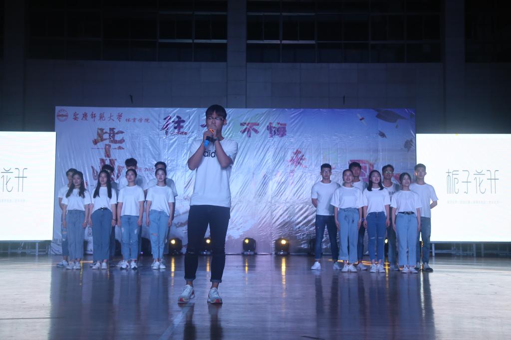 伴随绚丽的舞台灯光秀和2015级体表(2)班精彩的开场舞,晚会正式拉开帷幕。本场晚会共分为“不忘初心”、“勇于追求”、“往昔不悔,来日可期”三个篇章,节目内容丰富,引人入胜。第一篇章中,师院跆拳道馆的节目《旋风小子》,是由一群稚嫩可爱的小朋友们所带来,年龄虽小,一招一式却绝不含糊,引得台下掌声阵阵,瞬间点燃了全场的氛围。2016级梁艺等人歌曲《记 念》,“一边书写,一边怀念”,毕业生们的青春回忆在歌声中一幕幕上演。2017级新生合力演出的《舞所不能》更是引起热烈反响,大家为了师兄师姐卖力表演的舞蹈串烧,将青春的活力与创造完美展现,使得本场晚会步入高潮。第二篇章中,小品《光阴的故事》以幽默诙谐的话语表达出了流年易逝,也体现了当年不变的珍贵的情谊。青春岁月就如白驹过隙,从指间悄悄溜去,2015体表(3)班的现代舞《再见青春》,精美的编排和精湛的舞技将青春的不舍和留念表现得淋漓尽致,带动了毕业生们的思绪,使在场的观众为之折服。李杰等人的经典朗诵《致橡树》和歌曲《春风十里》,抑扬顿挫的声调,抒发着情怀,表达着祝愿。晚会最后一个篇章,是由体育学院学生会主席团为师兄师姐们送上的特殊的情景剧祝福——《365个祝福》。在一首大合唱歌曲《栀子花开》的感染下,全场氛围突破泪点,在大屏幕放映的毕业视频中,每一个熟悉的老师亲切的祝福话语里,满含着四年来相互陪伴的真情。至此本场毕业生欢送会划上了圆满的句号。所有毕业生们与老师们合影留念并拥抱告别。(汪洋)