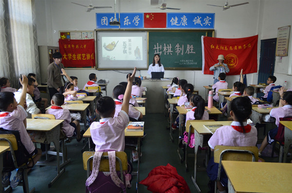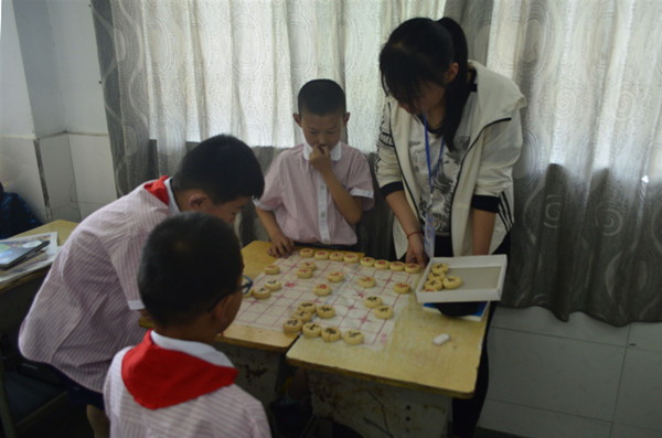 环境工程专业2018(3)班何敏是红太阳志愿服务团队的一员。她表示,此次支教活动与以往不同,通过教授学生们棋艺知识,可以与学生们一起下棋,知识性和趣味性并存,还能增添学生们对棋艺的喜爱。