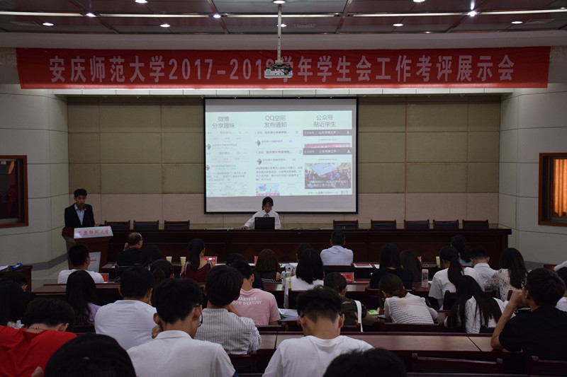 6月13日下午,永利官网2017-2018学年学生会工作考评展示会在行政楼一楼会议室举行。校团委负责人以及各学院团总支负责人应邀出席会议并担任评委,校学生会及各学院学生会学生骨干200人参加了会议。