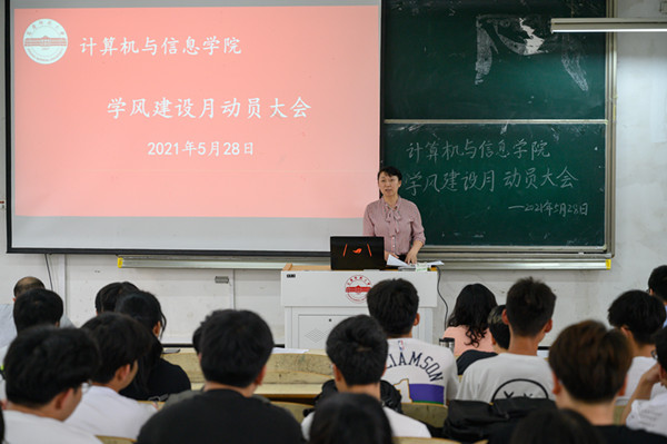 为切实解决好期中教学互评及信息反馈与整改活动中与会师生反馈的学风班风问题,5月28日,计算机与信息学院召开学风建设月动员大会,学院党委书记陈银凤、全体辅导员和各班班长、团支书、学习委员、生活委员参加会议,学院党委副书记江晋剑主持会议。