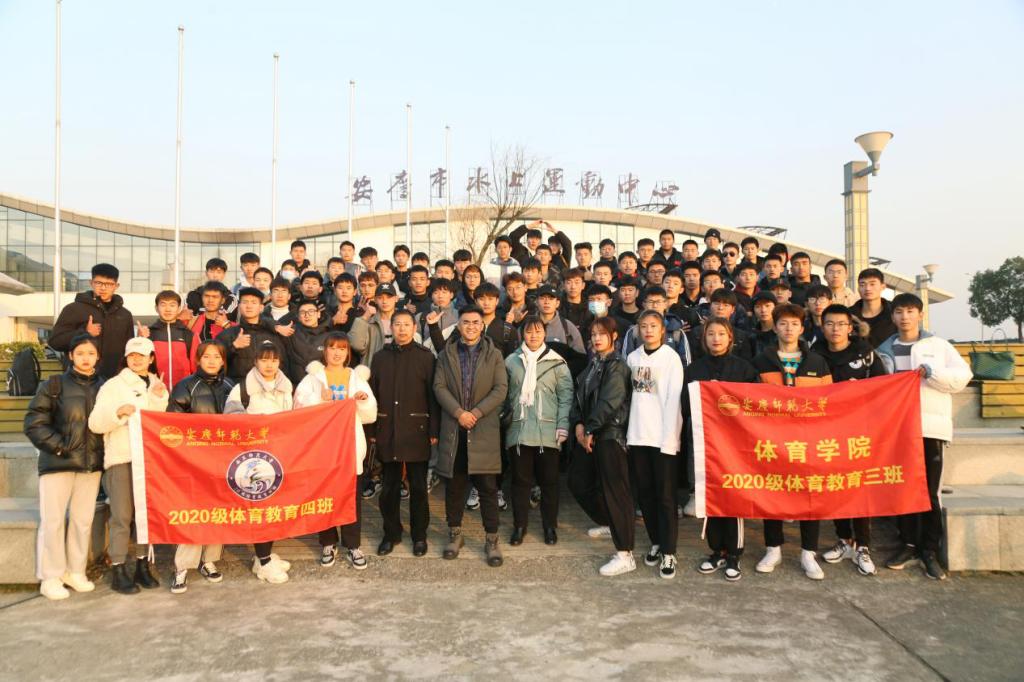 “用力划!加油!”“坚持住,还差一点就赢了!”12月20日,安庆市水上运动中心场内气氛活跃,时不时传出阵阵喝彩声。原来,这是永利官网体育教育专业2020级的88名学子在此举办“龙舟赛”,中心的李永存教练接待并指导运动技巧。