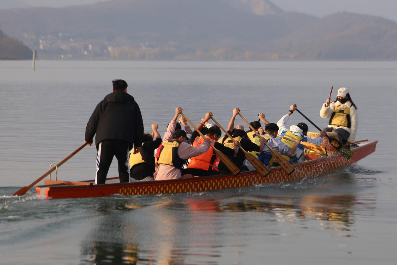 握桨、上艇、敲鼓……在该院老师和中心教练的指导下,88名学子依次组队,纷纷展开实战训练。经历了一上午的刻苦学习,学生们基本掌握了划龙舟的基本要领,对龙舟文化也有了更深的体悟。