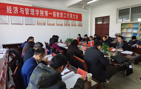 12月11日,经济与管理学院在学院会议室召开第一届教职工代表大会,学院全体教职工代表和列席代表参加会议。大会的主题是“以学科建设为龙头,以专业建设为根基,以队伍建设为保障,不断推动学院人才培养事业高质量发展”。会议由大会主席团主持。