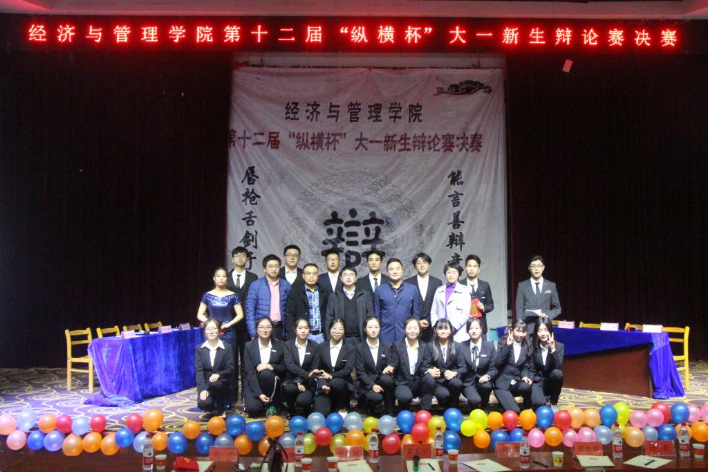 “纵横杯”大一新生辩论赛是经济与管理学院的品牌赛事之一,目前已经连续举办了12届。本次新生辩论赛,历时一个半月,从初赛到复赛,辩题涉及“改革开放”“清考制度”“贸易战”“经济体制”等经济学专业问题和高等教育热点问题。通过比赛,不断引导学生关注社会、关注时政,在比赛中学专业、学思考、学做人。(胡芬 张利军)