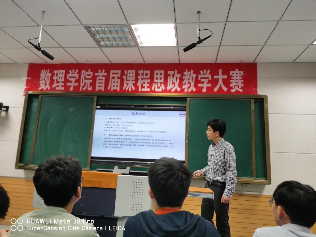 4月30日,数理学院在文津楼105教室举办首届课程思政教学大赛。学院党政领导钟金标、申传胜、张海、何骏,各系(部)主任,以及部分师生参加,学院副院长张海教授主持本次比赛活动。