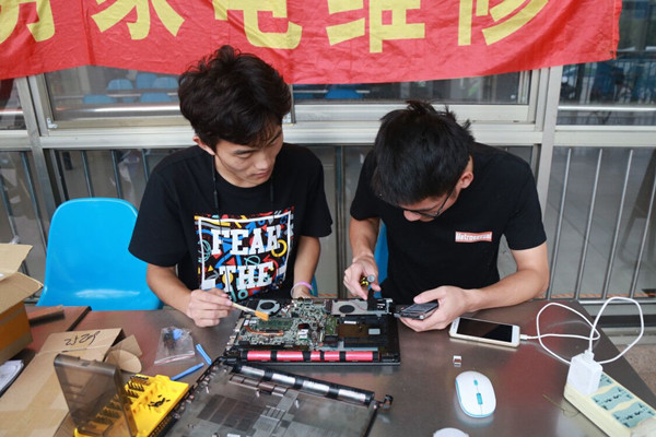 “电脑开不了机、蓝屏、出现白块,出现这些问题的原因复杂多样,我们要做的就是从系统、硬件到散热等逐个排查,找出‘病因’再去解决。”微电子科学与工程专业2015级的李良已经是第三次参加这个活动了。他表示,电脑不断地在更新换代,所以每一年过来维修时都会见识到不同配置、设置方面的问题,“所以这样也会不断地拓宽我的知识面,提升自己的能力”。